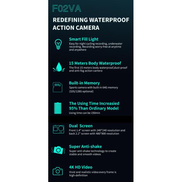 WiFi Action Camera Dual Screen 4K 60FPS Long battery life Underwater Action Camera